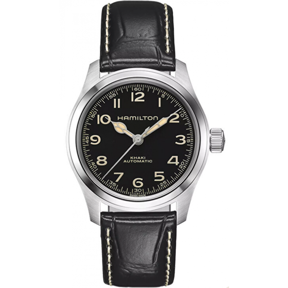 Khaki Field Murph Auto 38mm burada. Bilim kurgu dünyasının en ünlü saatlerinden olan ve hayranlarının kısaca 'The Murph’ dediği bu saat artık kompakt bir 38mm paslanmaz çelik kasa içinde. Ultra ultra kolay okunan siyah kadranı, bej vintage tarzı Super-LumiNova® bitişli ibreleri ve siyah deri kayışıyla, önceki 42mm modelin ana estetik kodlarını yansıtıyor. 80 saat güç rezervli H-10 otomatik mekanizmayla çalışan Khaki Field Murph Auto, daha küçük saatlere tutkun olanların kalbini çalacak.
